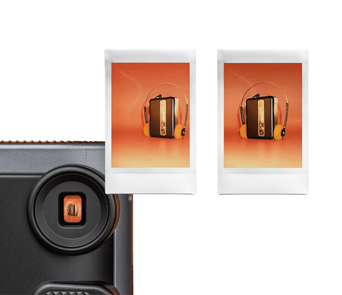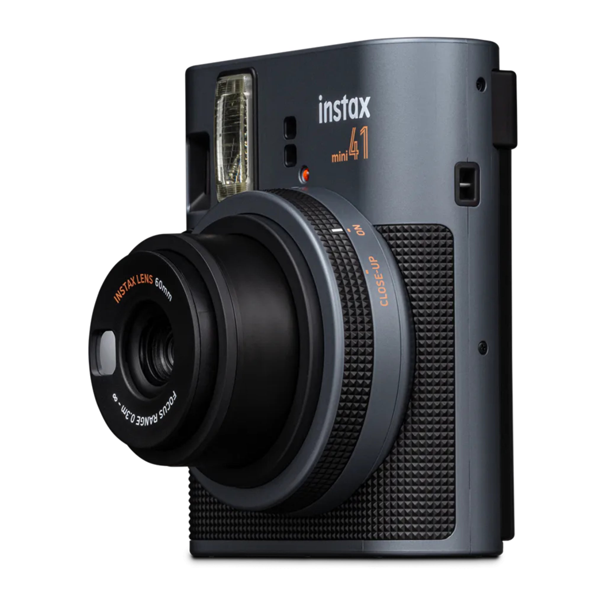 A perfect blend of vintage charm and modern craftsmanship. Designed with a textured, tactile body for great grip, and a subtle metallic-like finish with orange color accents for a touch of elegance, this classically designed instant camera will please even the toughest critic.